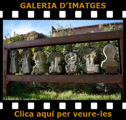 El més destacable del poble(o, si més no, el més curiós, són les esteles funeràries que hi ha a l’antic cementiri de l’església parroquial, dedicada a Sant Jaume, d’origen romànic. A l’any 2007 es van museïtzar set esteles discoïdals, és a dir, amb forma de disc encarat al sol sobre d'un suport trapezoïdal, on s'hi gravaven símbols pagans solars o símbols cristians, com creus, motius geomètrics, escuts o símbols d'oficis. Sobre un marc metàl·lic es poden observar perfectament tots els detalls d’ambdues cares. Servien per marcar la capçalera de les tombes i, aquí, el seu ús es remunta al segle XII i s'allarga fins al XVIII. De fet, eren la principal excusa per fer la caminada i, per tot plegat, ha valgut la pena.