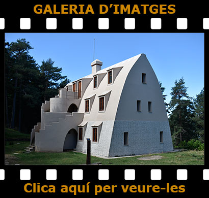 Després d’una pujada arribem al Xalet del Catllaràs, un edifici modernista. Va ser construït entre els anys 1901 i 1903 per la Companyia General d'Asfalts i Portland, que explotava diferents mines de carbó de la zona, per allotjar, entre altres, els enginyers anglesos encarregats de muntar les instal·lacions mineres. Sembla que Eusebi Güell, propietari d'Asland hauria encarregat el projecte del xalet a Antoni Gaudí (a qui s’atribueix, tot i que no hi ha cap document que ho demostri). Jo hi l’havia vist fa força anys i el recordava més tronat, fins i tot mig abandonat. Per sort a partir del 2015 es va anar restaurant, recuperant el seu aspecte original, tot i que encara no està en ús i no es pot visitar l’interior.