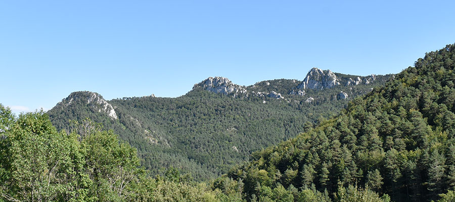 Acabada la visita ens comencem a enfilar mica en mica pels boscos de pi roig que ens acompanyaran pràcticament tot el camí. De bolets en veurem ben pocs i cap de comestible, però almenys tindrem la sort de poder contemplar un esquirol i algun voltor. També, en algun punt, notarem la presència, més molesta, d’algun tàvec.