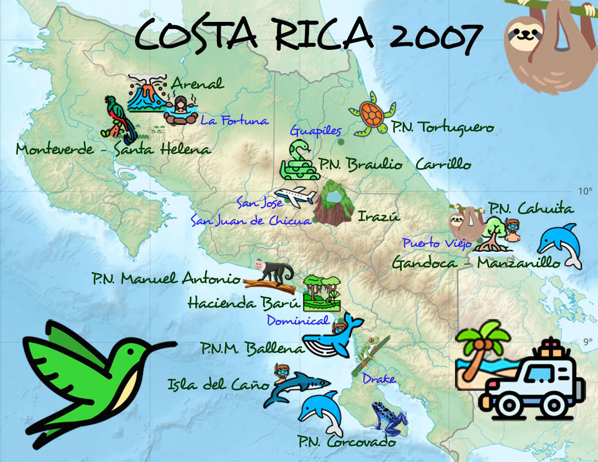 Per què a Costa Rica? Per la selva i la seva fauna, la platja i els volcans... Com? De la millor manera, amb un cotxe llogat i en hotels barats. Quan? Del 26 d’agost al 18 de setembre de l’any 2007.