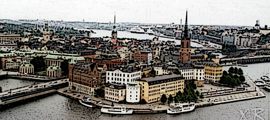 Tot caminant pels carrers de la ciutat vella, amb cases pintades sempre amb tons suaus, ens dirigim cap a l’ajuntament oStadhuset. Primer pugem a la seva torre, des d’on hi ha unes magnífiques vistes del casc antic, de postal (cada any surt, o sortia, a l’anunci de la grossa de Nadal). Dubtem una mica, però finalment decidim visitar el seu interior. Afortunadament. La visita, que aproximadament dura una hora, és guiada en anglès. No entenem res, però gràcies a una mini guia, que ens han donat a l’entrada, i a uns espanyols, que molt amablement ens fan de traductors a estones, podem saber que és el que anem veient: la sala del consell, que recorda a una cabana víking i on es fan els plens, la sala blava, que en realitat és d’obra vista ja que a l’arquitecte li va agradar més així, i on cada any s’hi entreguen els premis Nobel, i el saló daurat, recoberts amb divuit milions de trossos de vidre i or, i on se celebren banquets oficials.