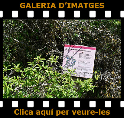 Fem un tros per carretera i poc després pel seu costat, per sort està poc transitada. Girem al trencant del castell i de seguida trobem el panell informatiu del “Camí del Castell”, ben senyalitzat. Decidim seguir-lo ja que, a més a més, fa una ruta botànica molt maca. Pel camí anirem trobant diferents cartells informatius amb alguns dels arbres, arbustos i mates més significatius de la zona. Ens hi anem entretenint, especialment la Maite i jo.