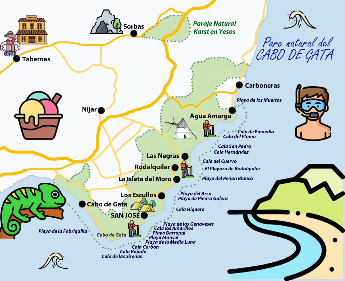- De la Isleta del Moro a los Escullos (5.7 Km i 50 m de desnivell, anar i tornar). TRACK wikiloc.