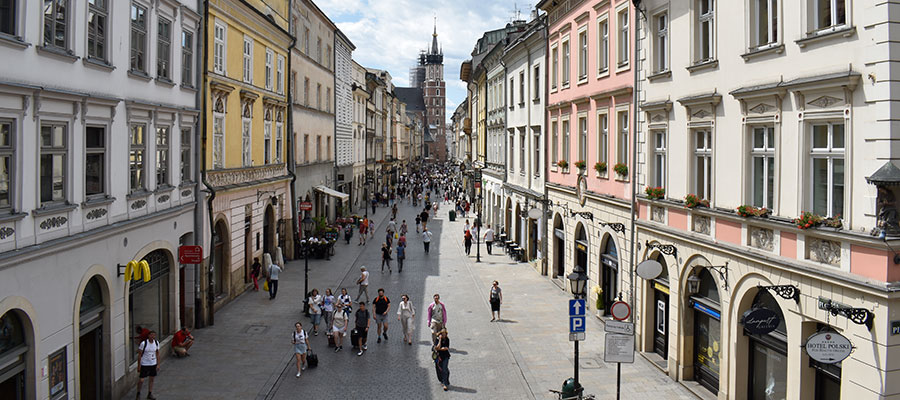 Un cop visitades les muralles baixem per aquest carrer, que uneix la Porta de Florià amb la plaça del Mercat. Envoltada de cases d'estil renaixentista amb façanes de colors pastel, formava part de l'antic Camí Reial i és un dels carrers comercials més bonics de la ciutat. En aquest carrer també hi ha algun dels locals més emblemàtics de la ciutat, com l'Hotel Pod Róza (el més antic) o el Museu de la Farmàcia (que fa pinta d’estar molt bé, però hauré d’esperar a una altra ocasió per convèncer a la Clara, tot i que no ho provo, ens quedà molt per fer i aquesta no és una visita prioritària).
